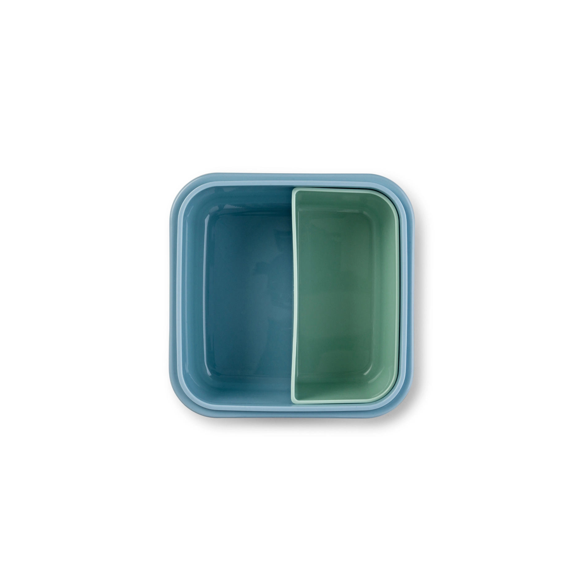 Su diseño hermético evita fugas y derrames. Cuenta con un contenedor interior sin tapa, perfecto para separar alimentos como fruta, frutos secos o galletas, sin que se mezclen.