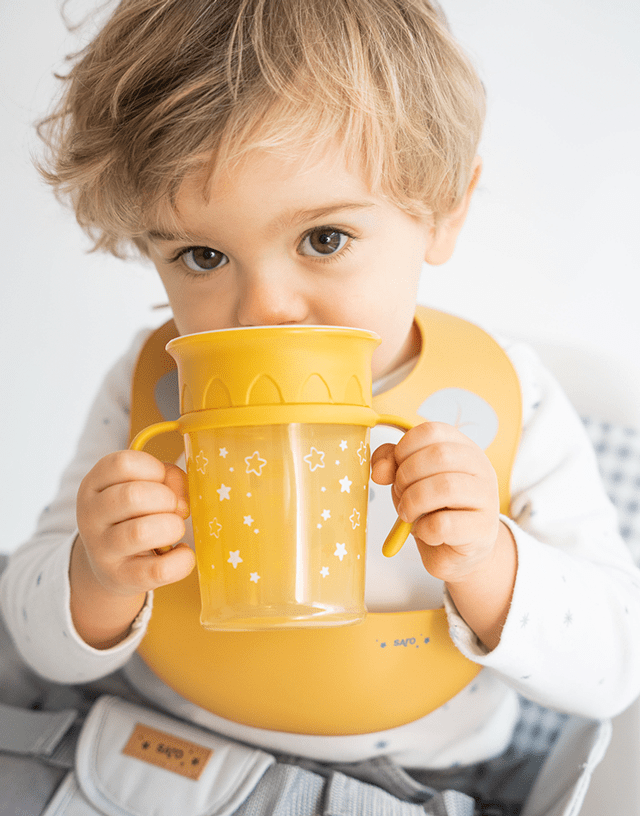 Taza antigoteo 360º: para beber en cualquier punto del borde sin derrames. Se cierra automáticamente cuando el niño deja de beber.