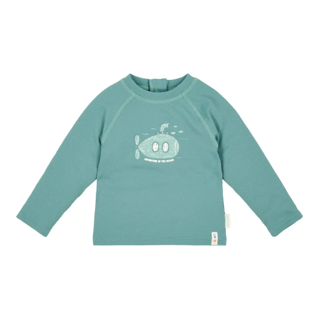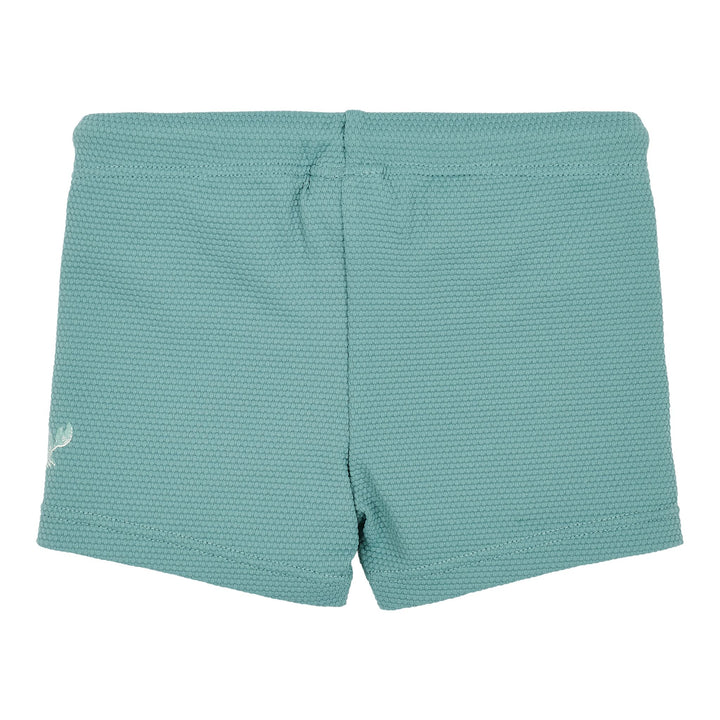 Estos elegantes bañadores verdes Ocean Green están pensados para los pequeños amantes del agua que quieren disfrutar del verano con total libertad. El color verde liso aporta un aspecto fresco y tranquilo, mientras que el pequeño submarino en la pierna izquierda añade un toque divertido. Los bañadores están confeccionados en un suave tejido tipo gofre, se ajustan perfectamente y ofrecen una gran libertad de movimiento. El tejido resulta cómodo al tacto y es perfecto para los días activos en la playa o para divertirse chapoteando en la piscina. Combina fácilmente el bañador con la camiseta o la gorra a juego. En un abrir y cerrar de ojos, podrás crear un conjunto veraniego que protege, permite moverse con libertad y destaca. No te olvides del protector solar para proteger a tu pequeño.