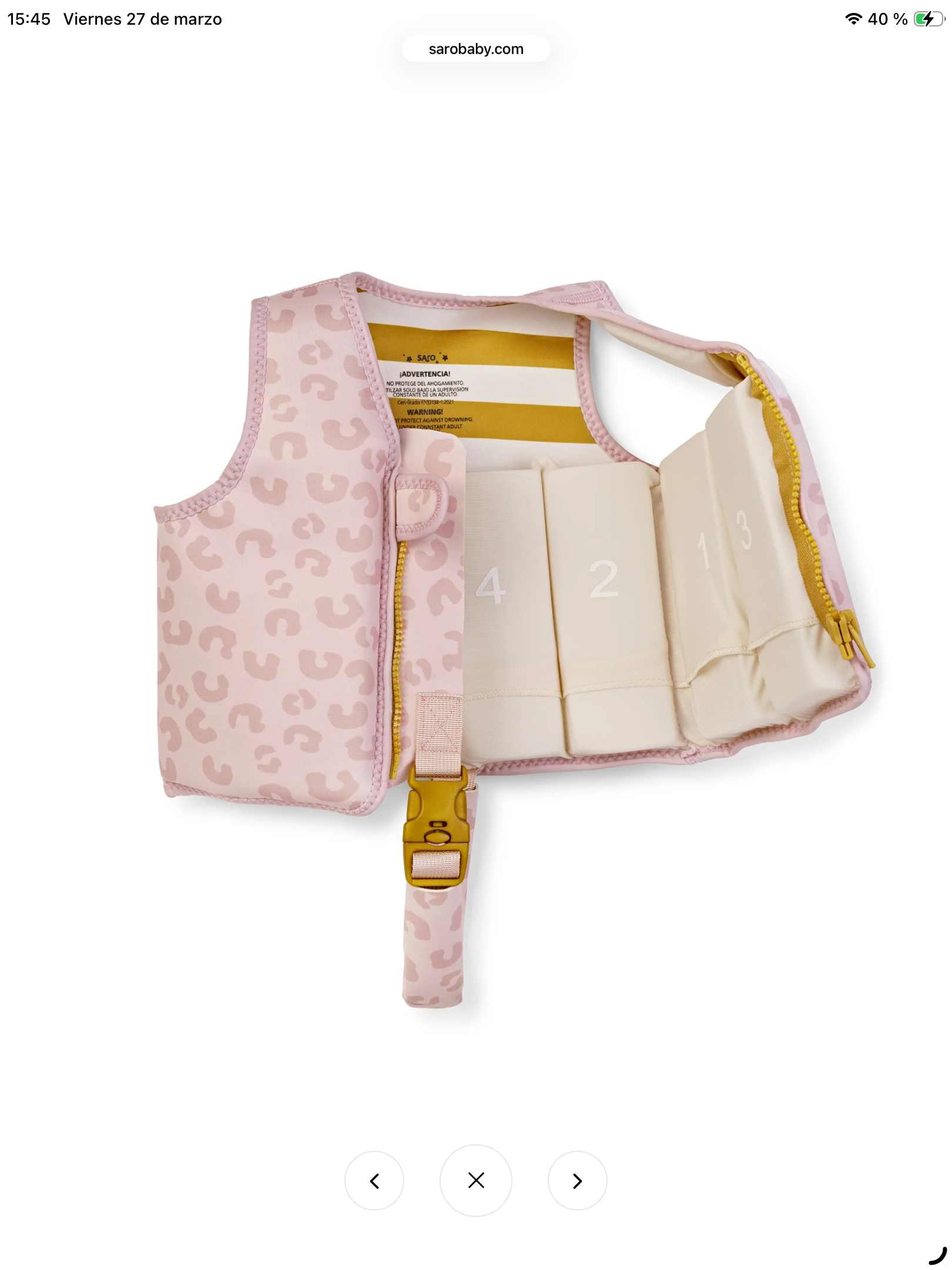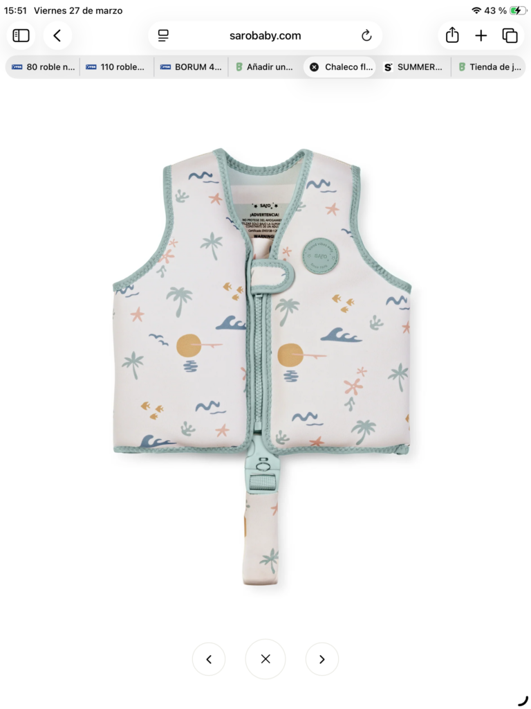¡Al agua patos! El chaleco flotador de Saro es el complemento perfecto para aprender a nadar de manera cómoda y segura.