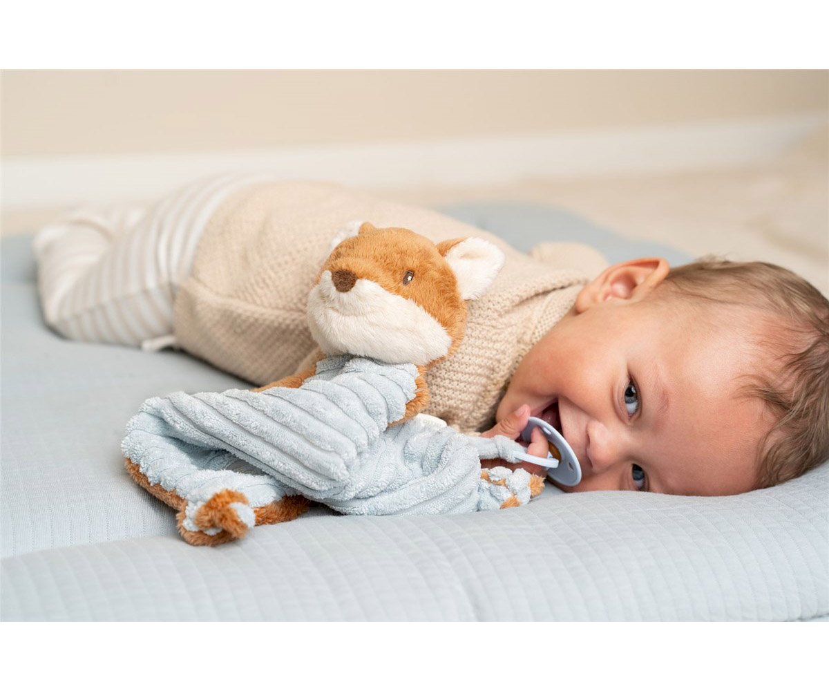 Este doudou con adorable cabecita de zorro, pertenece a la colección Forest Friends de Little Dutch. Su cuerpo fabricado en tela suave, podrás encontrar etiquetas coloridas y nudos para que los peques lo puedan manipular fácilmente.