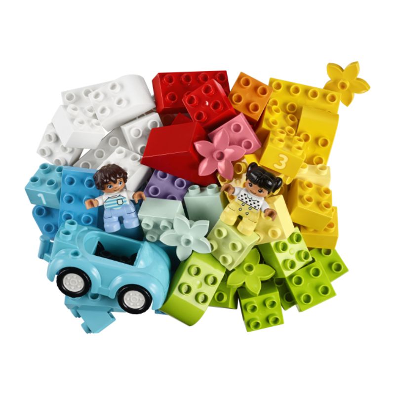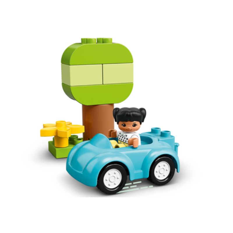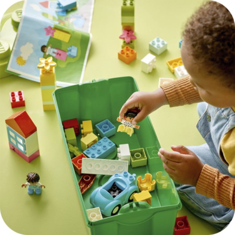 Incluye 65 ladrillos, así como elementos reconocibles para estimular la mente de los bebés, como un coche con ruedas que giran, un tejado, una ventana, flores, pan, figuras DUPLO® de personas y ladrillos para aprender los números 1, 2 y 3.