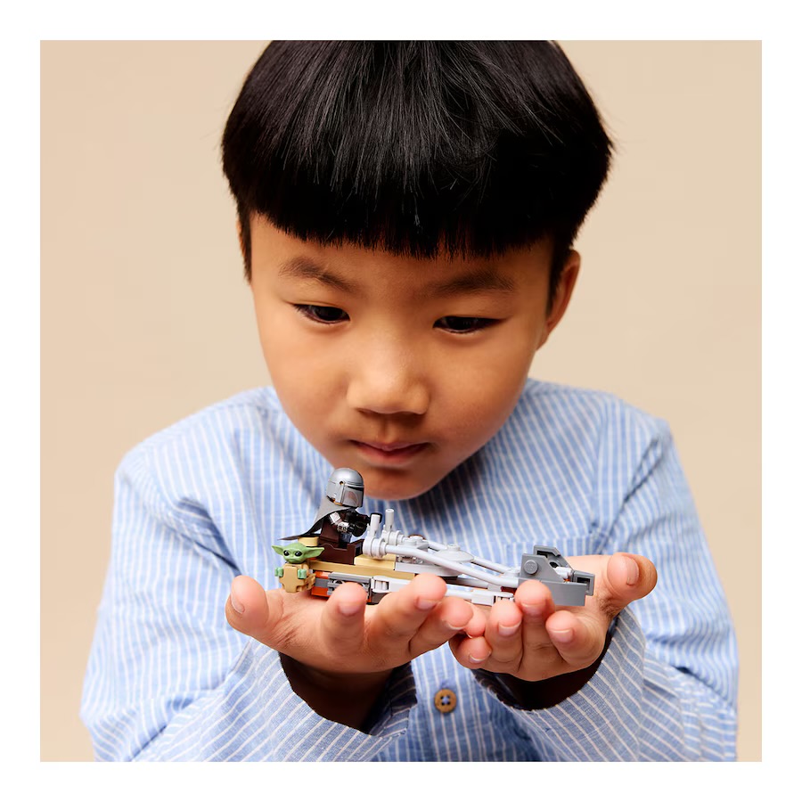 El juego de construcción Moto Speeder del Mandaloriano y Grogu de LEGO Star Wars permite recrear escenas del universo de Star Wars. Incluye piezas para construir una moto speeder y figuras de los personajes del Mandaloriano y Grogu. Fomenta la habilidad manual, la creatividad y la inteligencia. Es un producto para quienes disfrutan de los desafíos de construcción y la narrativa de la franquicia.