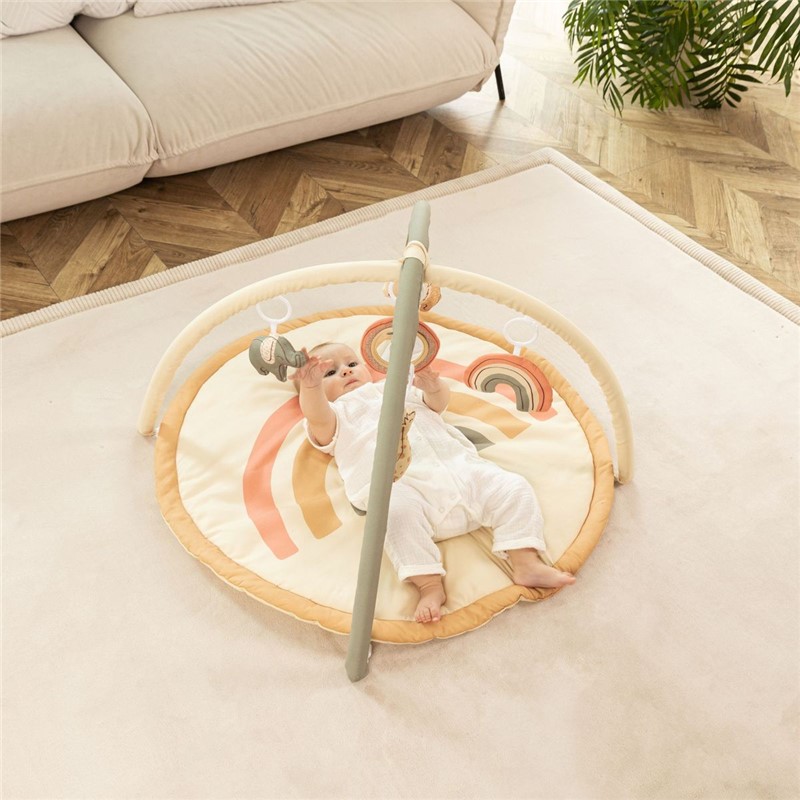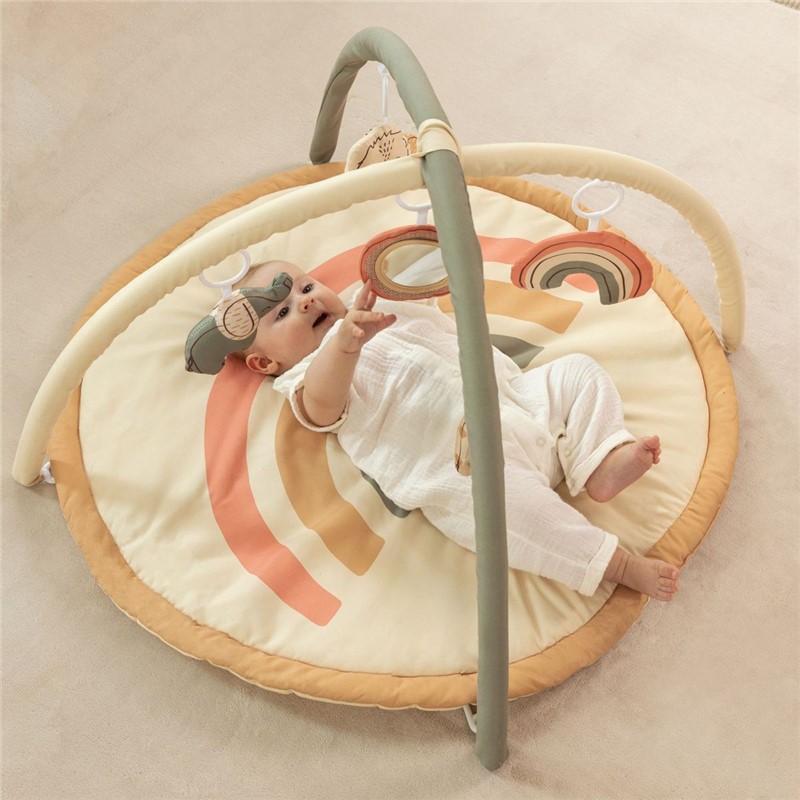 La primera opción para padres con estilo: nuestro gimnasio de actividades para bebés viene en un elegante diseño unisex Boho Rainbow que entretendrá a tu bebé y complementará la decoración de tu sala de estar o habitación infantil. Gracias a los arcos resistentes y flexibles y la posición óptima de los juguetes colgantes, el gimnasio Hakuna Matte favorece el desarrollo de los músculos centrales y del cuello, las habilidades motoras y la coordinación mano-ojo.