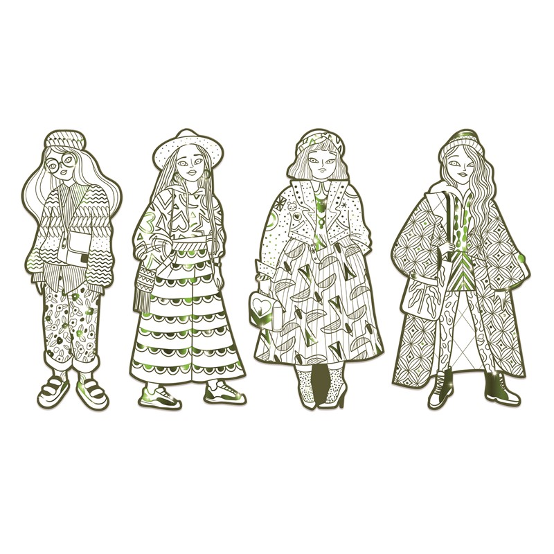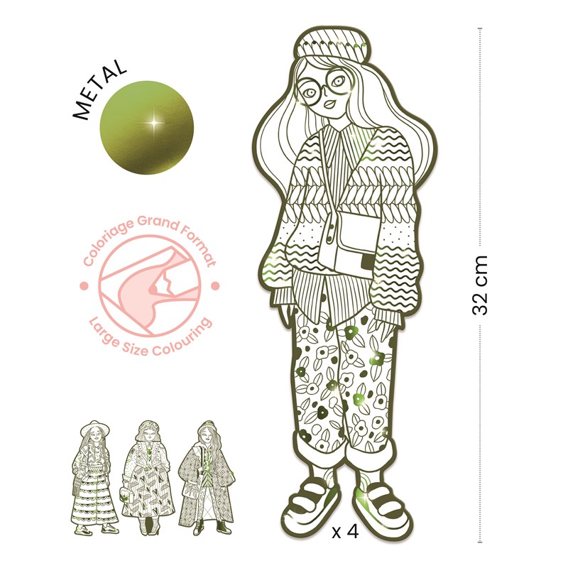Son cuatro grandes contornos de 32 cm de altura, hay mucho espacio para dar rienda suelta a la creatividad y el color en cada conjunto. Cada contorno está adornado con patrones y áreas metálicas brillantes que agregan un toque extra de glamour a los diseños. Y con una amplia variedad de estilos de moda para elegir, puedes cambiar las cosas y crear un guardarropa completo de atuendos únicos y modernos.