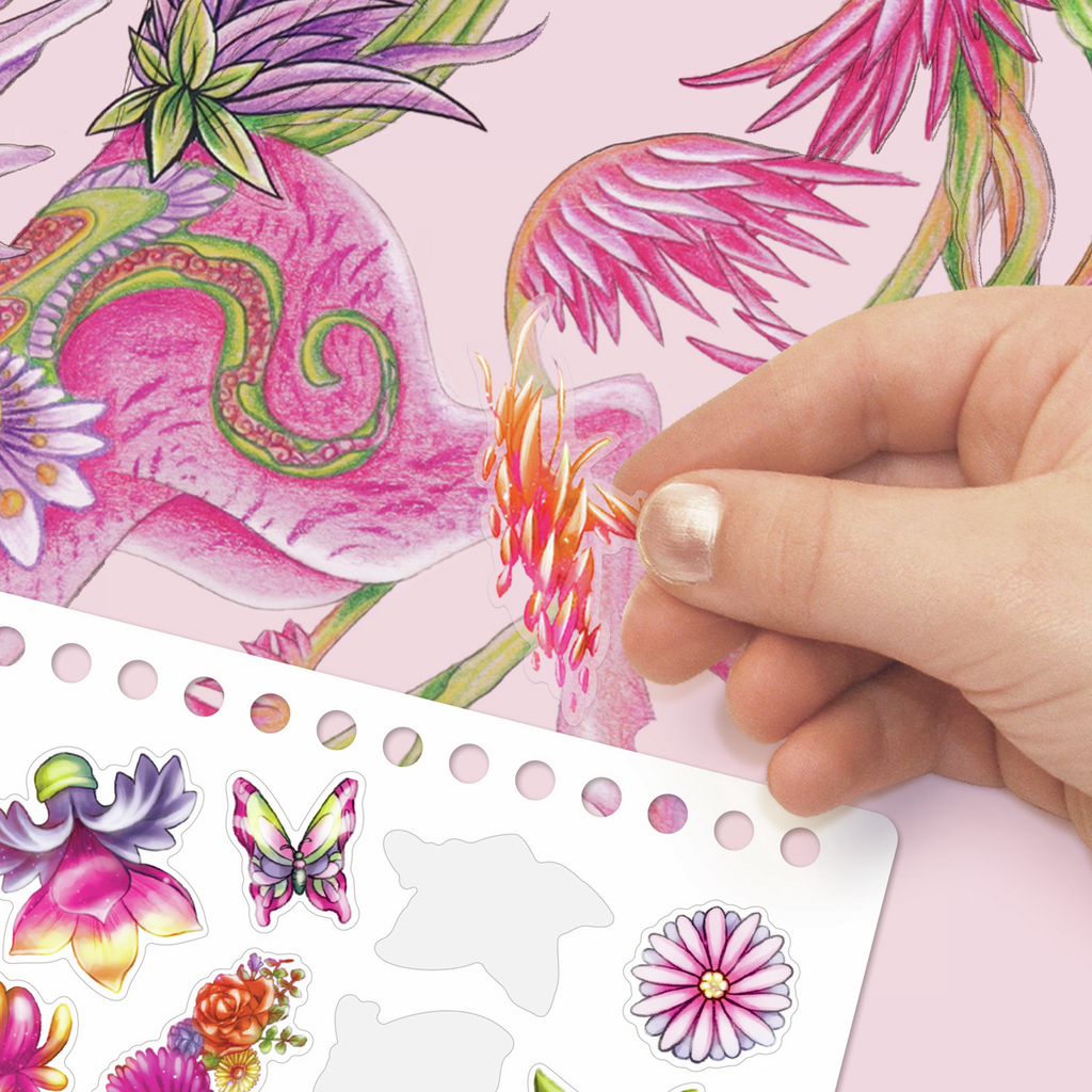 ¡Crea místicos y hermosos caballos de fantasía que vuelan por el mágico cielo brumoso! Utiliza diferentes pegatinas, plantillas y técnicas para crear los caballos de Petulia y Hazelia.