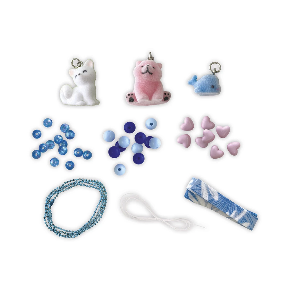 ¡Joyas de animales de peluche! Con este kit de bisutería, los niños a partir de 6 años podrán hacer 3 piezas de bisutería con abalorios recubiertos de terciopelo. Nunca te cansarás de abrazar a este oso polar, a este simpático zorro de las nieves o a esta bonita ballena. Por eso, este kit creativo es una actividad estupenda para desarrollar la paciencia y la destreza, pero también una gran oportunidad para expresar tu estilo a través de tus creaciones. Además, llevar tus propias joyas hechas a mano te ayuda a desarrollar la confianza en ti mismo y a afirmar tu personalidad. En total, los niños podrán hacer 1 collar y 2 pulseras gracias al contenido de la caja creativa: 3 dijes recubiertos de terciopelo, 12 cuentas redondas, 7 cuentas en forma de corazón, 20 cuentas transparentes, 1 cinta estampada, hilo elástico y 1 cadena de microesferas con cierre integrado. También se incluye un folleto con patrones e instrucciones para guiar a los niños a lo largo de la actividad. Con su estilo de oso polar, ¡estos animales son tan monos! Este pasatiempo creativo es muy fácil de hacer y les encantará a los niños de 6 años: a esta edad, empiezan a imponer sus gustos y les encanta completar sus conjuntos con sus joyas favoritas del momento. ¡Así que atrévete con tu estilo escarchado y brilla con dulzura!