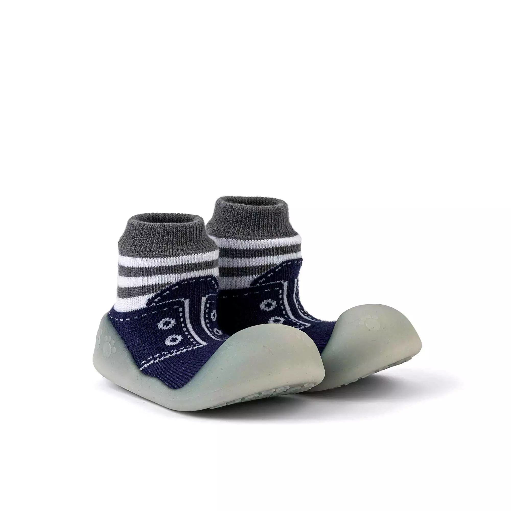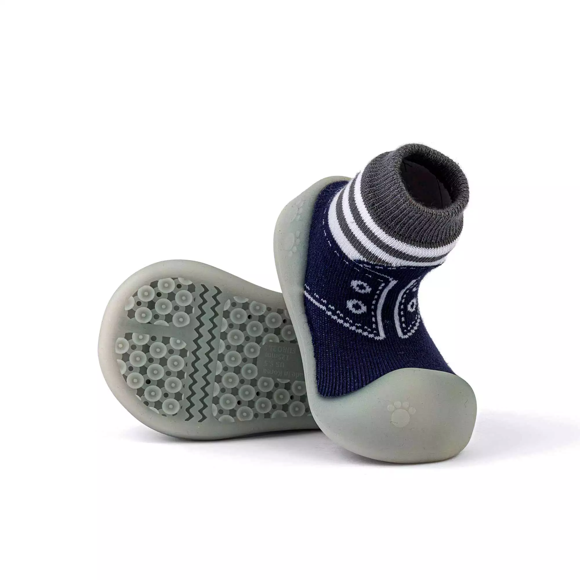 Zapatos de algodón de primeros pasos para bebé con estampado sneakers azul marino. Son los zapatitos de bebé que cambian de color con la luz del sol para que tu pequeño se divierta a la vez que aprende a caminar de forma cómoda y segura.