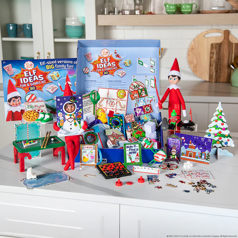 ¡Todos participan en las divertidas noches familiares, y tu elfo está listo para ser un alegre campeón! Al igual que los juegos favoritos de la familia con los que tú y los tuyos jugáis, este kit festivo está repleto de populares juegos y accesorios del tamaño de un duende, actividades y mucho más, ¡para que tu duende esté listo para días de diversión, jolgorio y competición amistosa! Desde tres en raya hasta karaoke, pasando por pinball y mucho más, ¡este estupendo set para elfos es todo un éxito!