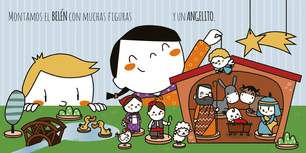 Nuestras fiestas de Navidad para los más pequeños. Descubrimos los elementos más representativos y tradicionales de la Navidad, en orden cronológico: el calendario de adviento, el belén, la decoración del árbol de Navidad, papá Noel, los villancicos y los polvorones, los tres reyes de Oriente, hasta que llega el final de las vacaciones y nos despedimos de la Navidad hasta el año que viene.