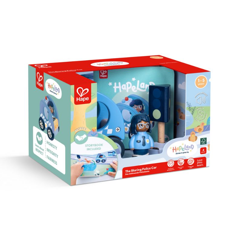 Combinando la narración de cuentos con el juego de roles, cada juguete Hape Land viene con un libro de cuentos sobre rasgos positivos para que los niños exploren a través del juego guiado o libre. Esta historia sobre la mujer policía en su coche inspira el juego de tu hijo mientras aprende a ser respetuoso en sus propios términos. Descubre todos los sets de juguetes de cuentos de Hape Land para crear un mundo diminuto basado en la curiosidad, la confianza, la amabilidad y el respeto.