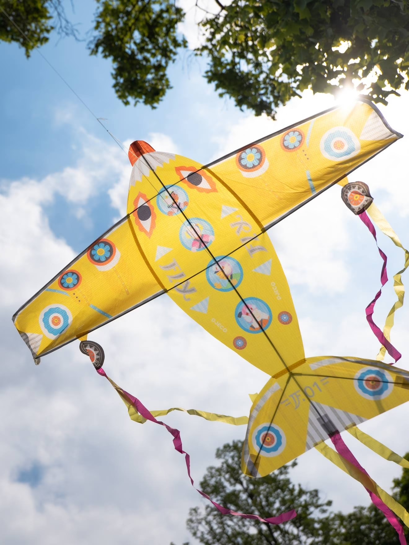 ¡Este avión está listo para surcar las nubes! Nada mejor para disfrutar del aire libre que correr y hacer volar esta cometa, mientras sus largas cintas ondean en el cielo ¿cómo de alto podrás hacerla volar?